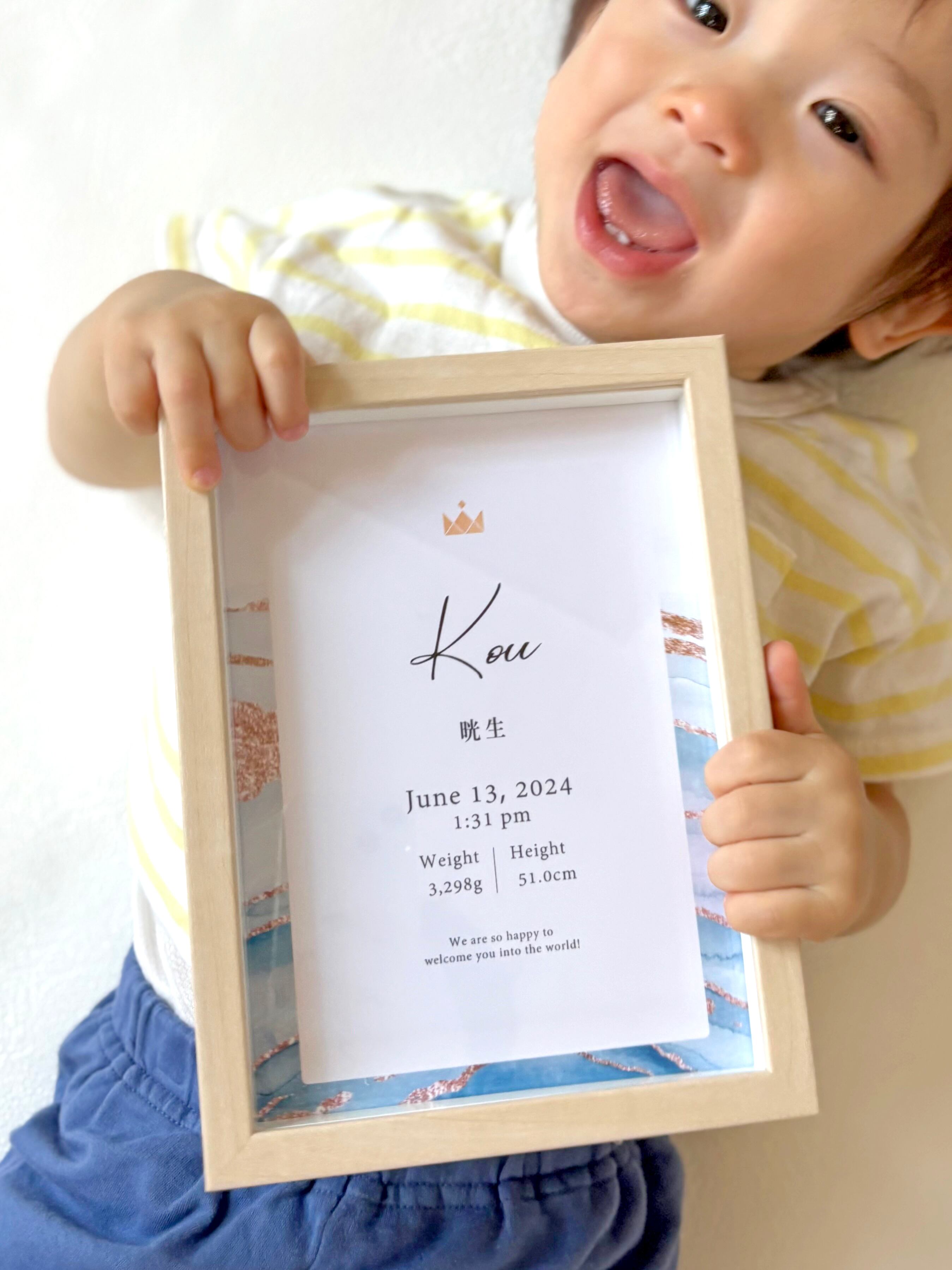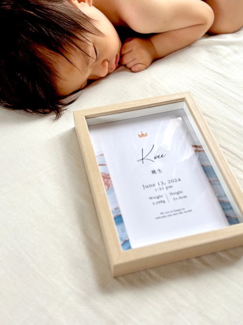 命名の特別な瞬間を、もっとおしゃれに。 「KAPUAの命名書」から洋風デザインの2Lサイズ木目調フレームセットが新登場! 北欧風・ボタニカル・くすみカラーなど、 今どきのインテリアにぴったりな洋風デザイン14柄、 さらに和柄命名書で人気の高い12柄も加わって、 全26柄の選べるラインナップにボリュームアップしました。 贈り物やインテリアとしてもぴったりな、新しい命名書のかたちをぜひお楽しみください✨ サイズ : 2L 素材 : 高級厚手マット紙を採用 紙厚0.3mm ツヤなし仕上げ、発色の良い高級マット紙に印刷いたします フレーム;木目調、スタンドあり ◼︎お名前の字体を①〜④より ◼︎最下部の項目を「ご両親のお名前と苗字」「英字メッセージ①」「英字メッセージ②」より お選びいただけます ▶︎オプション 必要な方はご購入時にオプション選択をお願い致します ◎サンプル提示 +500円 ◎増刷フレームなし1枚 +1,000円 ◎モチーフ変更追加 +500円 ※和柄デザインに限り上部モチーフの変更追加が可能です ———————————— ▶︎購入方法 以下のオーダー内容を必ず備考欄へご記入ください ※オーダー内容に記載漏れがあると製作が遅れます 必ず下記の通りにご記入ください ①お子様のお名前(※アルファベット表記) ②お子様のお名前(※漢字またはひらがな) ③お名前の字体 ①〜④よりお選び下さい ④お誕生日(例 June 24, 2021) ⑤出生時刻(例 10:23 pm ) ⑥出生体重 (例 3,345g ) ⑦出生身長 (例 49.5cm ) ⑧最下部の項目「ご両親のお名前と苗字」を選択された方は、ご両親のお名前と苗字をご記入ください(※アルファベット表記 例)Ren Yui HAYASHI) ⑨Instagram掲載 OK or NG 不要な項目がありましたら「無し」とご記入ください 不明点がございましたらお気軽にお問い合わせください KAPUA Design KAPUA BOO Instagram(@kapua_boo) ベビー 赤ちゃん 新生児 出産祝い 出産 名入れ 和柄命名書 洋風命名書 命名 命名書 出産 お七夜 節句 初節句 女の子 男の子 百日祝い お宮参り こどもの日 ひなまつり