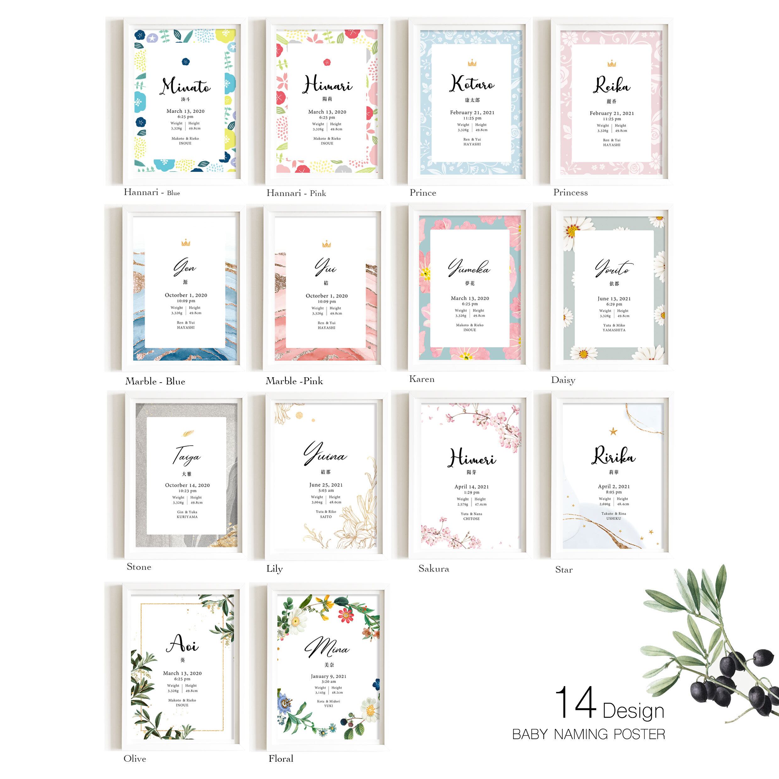 ベビー 赤ちゃん 新生児 出産祝い 出産 名入れ 和柄命名書 洋風命名書 命名 命名書